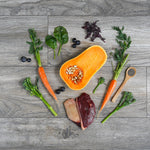 We’ve paired it with vibrant veg like carrots, broccoli, and butternut squash, then added spinach, blueberries, salmon oil, and a sprinkle of chia seeds, sea kelp, and alfalfa for a glossy coat and happy tummies.